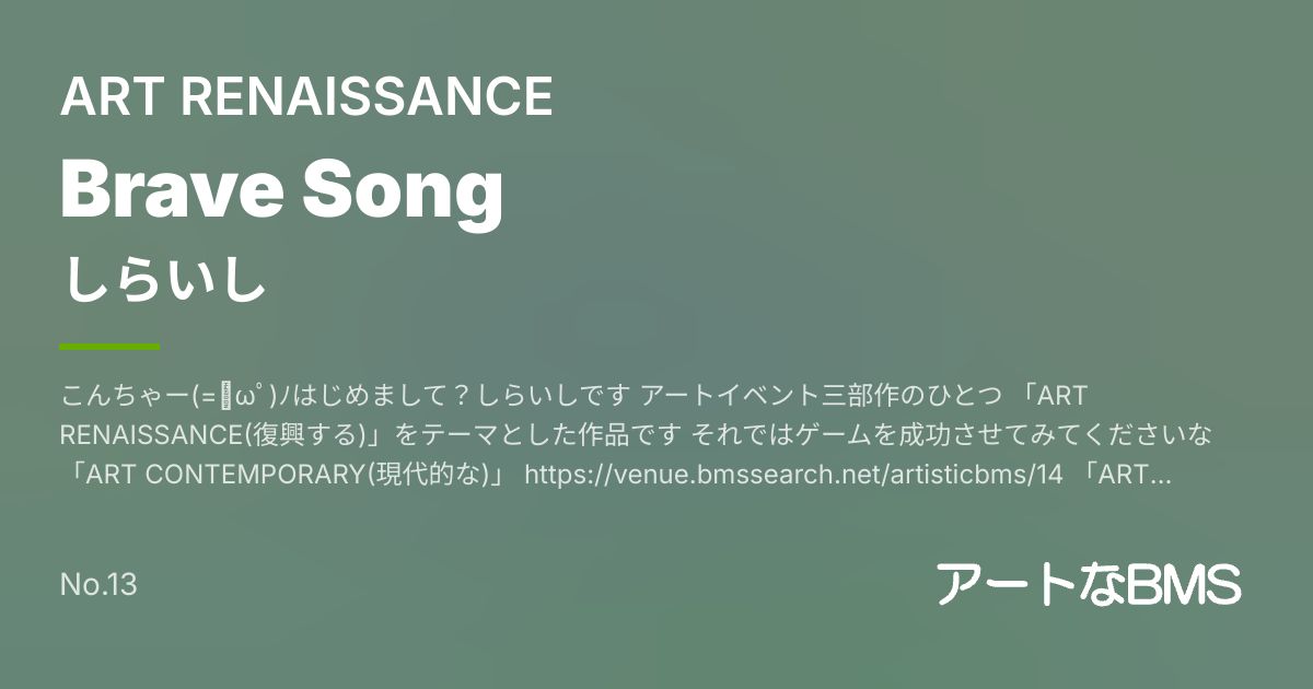 こんちゃー(=゚ω゚)ノはじめまして?しらいしです アートイベント三部作のひとつ 「ART RENAISSANCE(復興する)」をテーマとした作品です それではゲームを成功させてみてくださいな 「ART CONTEMPORARY(現代的な)」 https://venue.bmssearch.net/artisticbms/14 「ART PERMANENT(永久な)」 https://venue.bmssearch.net/artisticbms/15