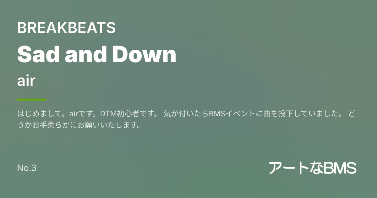 はじめまして。airです。DTM初心者です。 気が付いたらBMSイベントに曲を投下していました。 どうかお手柔らかにお願いいたします。