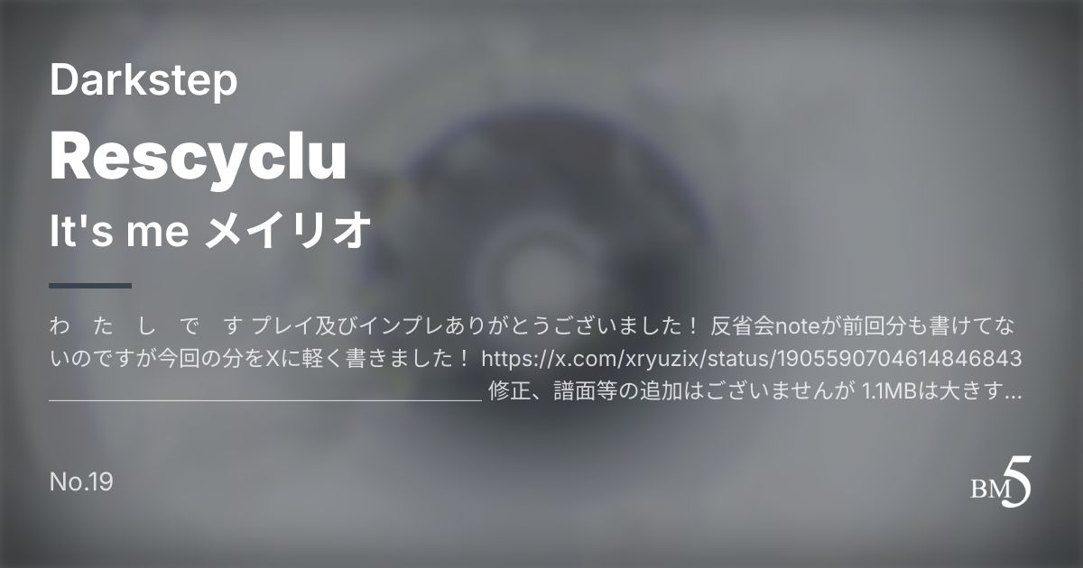 わ た し で す プレイ及びインプレありがとうございました! 反省会noteが前回分も書けてないのですが今回の分をXに軽く書きました! https://x.com/xryuzix/status/1905590704614846843 ____________________ 修正、譜面等の追加はございませんが 1.1MBは大きすぎる、後zipでくれという幻聴が聴こえたので16bit→8bit減質版を追加しておきます 偽名ボス場外乱闘 BM98 Kikuchan Version 3.32β Drink Edition動作確認