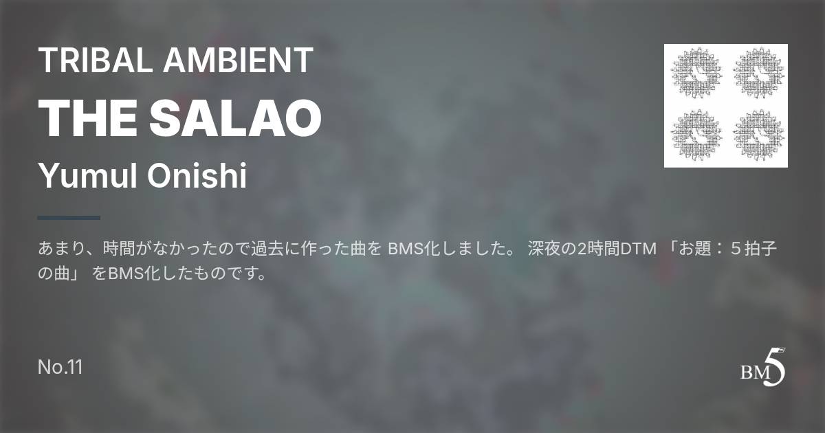 あまり、時間がなかったので過去に作った曲を BMS化しました。 深夜の2時間DTM 「お題:5拍子の曲」 をBMS化したものです。