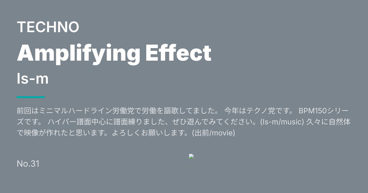 前回はミニマルハードライン労働党で労働を謳歌してました。 今年はテクノ党です。 BPM150シリーズです。 ハイパー譜面中心に譜面練りました、ぜひ遊んでみてください。(Is-m/music) 久々に自然体で映像が作れたと思います。よろしくお願いします。(出前/movie)