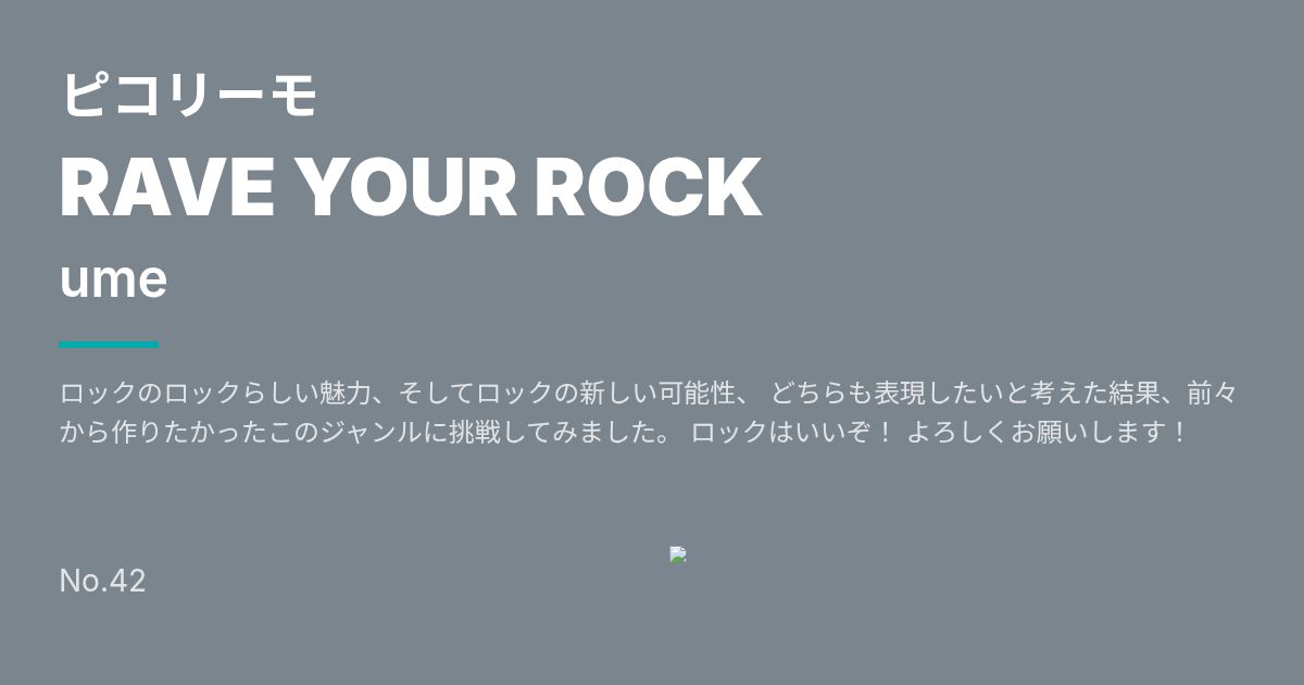 ロックのロックらしい魅力、そしてロックの新しい可能性、 どちらも表現したいと考えた結果、前々から作りたかったこのジャンルに挑戦してみました。 ロックはいいぞ! よろしくお願いします!