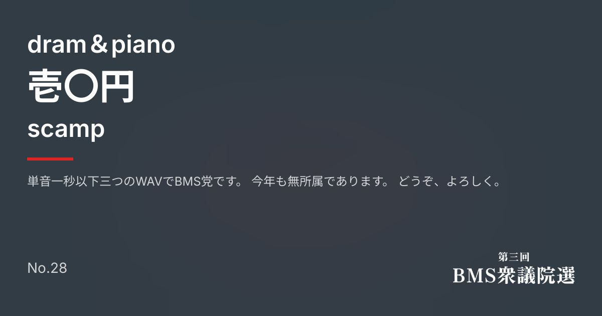 単音一秒以下三つのWAVでBMS党です。 今年も無所属であります。 どうぞ、よろしく。