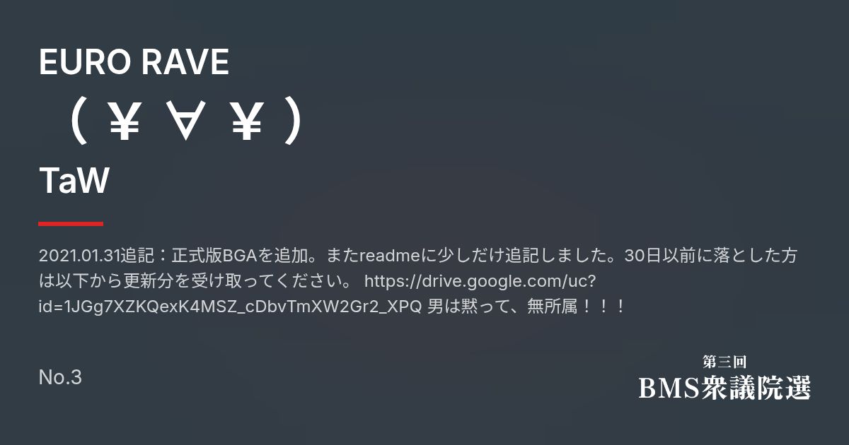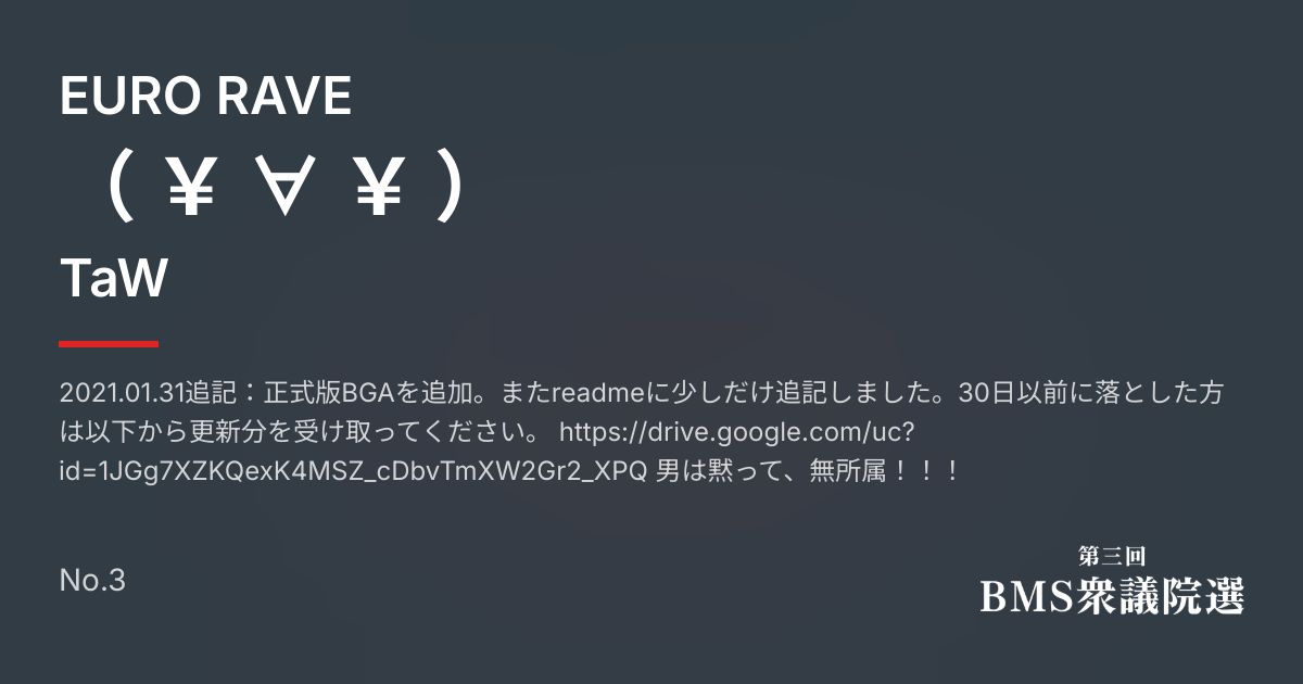 2021.01.31追記:正式版BGAを追加。またreadmeに少しだけ追記しました。30日以前に落とした方は以下から更新分を受け取ってください。 https://drive.google.com/uc?id=1JGg7XZKQexK4MSZ_cDbvTmXW2Gr2_XPQ 男は黙って、無所属!!!