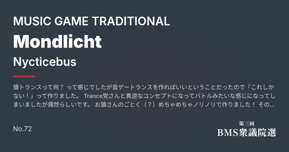 猿トランスって何? って感じでしたが音ゲートランスを作ればいいということだったので「これしかない!」って作りました。 Trance党さんと真逆なコンセプトになってバトルみたいな感じになってしまいましたが偶然らしいです。 お猿さんのごとく(?)めちゃめちゃノリノリで作りました! その結果、知っている人には何かもうあれですが!よろしくお願いします!!!!