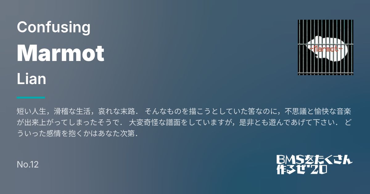 短い人生,滑稽な生活,哀れな末路. そんなものを描こうとしていた筈なのに,不思議と愉快な音楽が出来上がってしまったそうで. 大変奇怪な譜面をしていますが,是非とも遊んであげて下さい. どういった感情を抱くかはあなた次第.