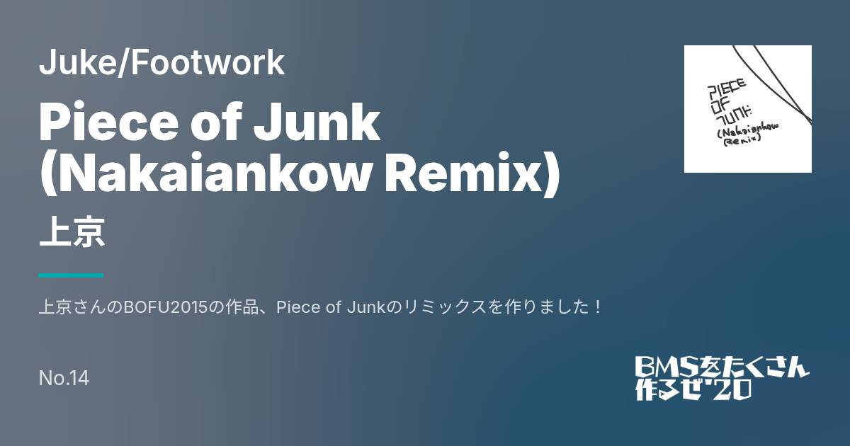 上京さんのBOFU2015の作品、Piece of Junkのリミックスを作りました!JukeJukeJukeJukeJukeJukeJuke