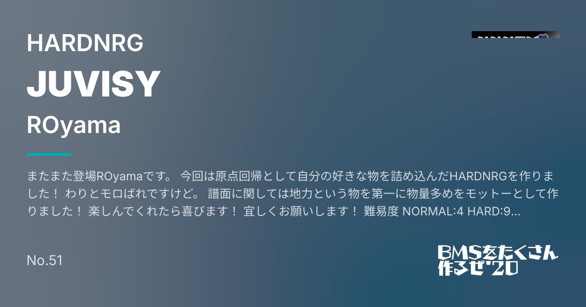またまた登場ROyamaです。 今回は原点回帰として自分の好きな物を詰め込んだHARDNRGを作りました! わりとモロばれですけど。 譜面に関しては地力という物を第一に物量多めをモットーとして作りました! 楽しんでくれたら喜びます! 宜しくお願いします! 難易度 NORMAL:4 HARD:9 ANOTHER:11(アツい) BLACKANOTHER:色々詰め込んだのでわからない