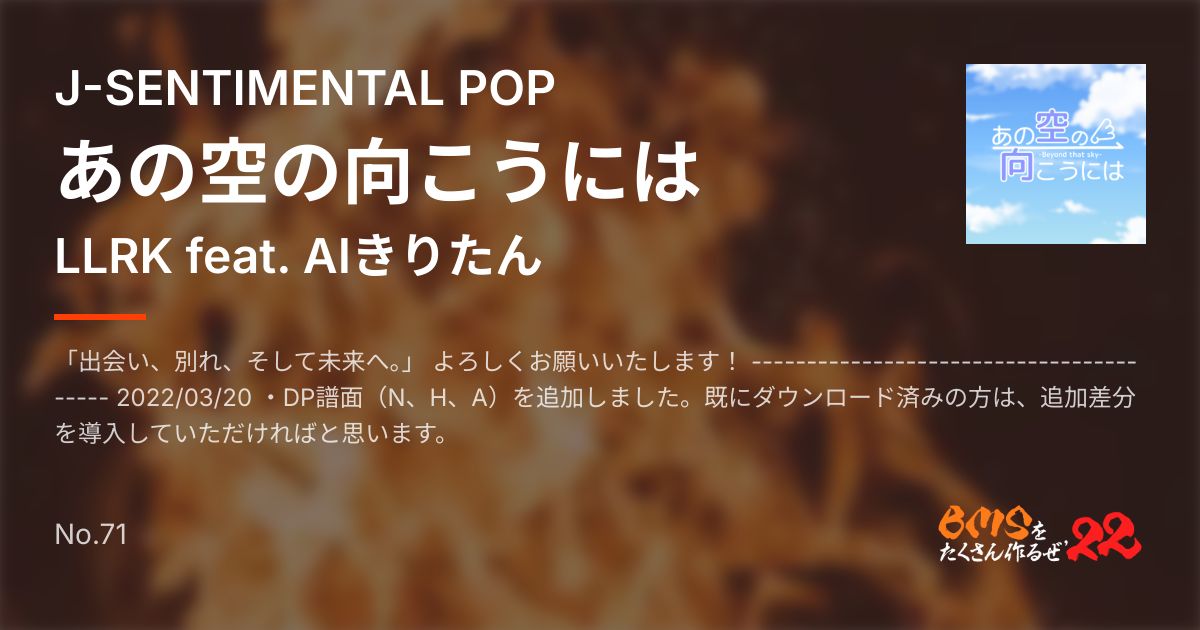 「出会い、別れ、そして未来へ。」 よろしくお願いいたします! ---------------------------------------- 2022/03/20 ・DP譜面(N、H、A)を追加しました。既にダウンロード済みの方は、追加差分を導入していただければと思います。