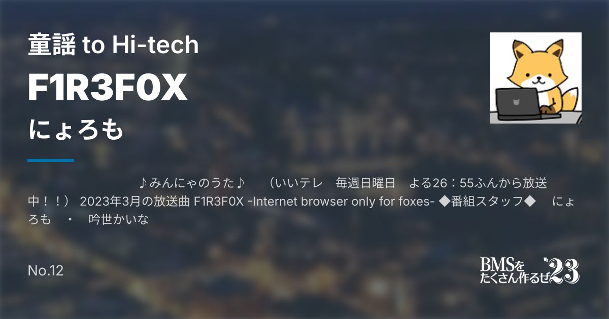 ♪みんにゃのうた♪ (いいテレ 毎週日曜日 よる26:55ふんから放送中!!) 2023年3月の放送曲 F1R3F0X -Internet browser only for foxes- ◆番組スタッフ◆ にょろも ・ 吟世かいな