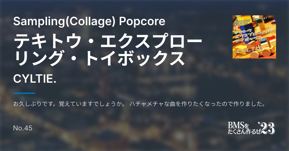 お久しぶりです。覚えていますでしょうか。 ハチャメチャな曲を作りたくなったので作りました。 2023年はDTMやれるでしょうか……。 よろしくお願いします。 ※3/11 18:00頃 追記 9KEYS NORMAL譜面におきまして、 BGAレーンへの誤配置により、音が抜けていた問題を修正する差分を上げました。 3/11 18:00以前にDLされた方で、PMSを遊ばれる予定のある方は、 お手数ですが適用の方をお願いいたします。
