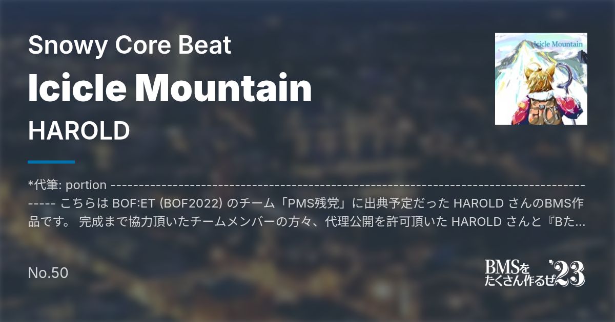 *代筆: portion ----------------------------------------------------------------------------------------- こちらは BOF:ET (BOF2022) のチーム「PMS残党」に出典予定だった HAROLD さんのBMS作品です。 完成まで協力頂いたチームメンバーの方々、代理公開を許可頂いた HAROLD さんと『Bた作』実行委員会様に感謝します。 このBMSに関して何かありましたら、portion (pmsportion@gmail.com) までご連絡ください。 ----------------------------------------------------------------------------------------- 譜面をたくさん作るぜ'23 になりました!! 中でも [7K ANOTHER] は HAROLD さんの自作譜面ですので、ぜひ触れて頂ければと思います。