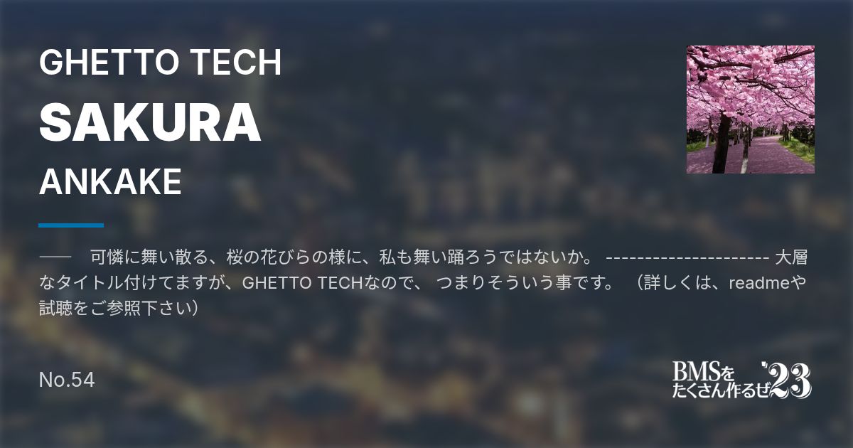―― 可憐に舞い散る、桜の花びらの様に、私も舞い踊ろうではないか。 --------------------- 大層なタイトル付けてますが、GHETTO TECHなので、 つまりそういう事です。 (詳しくは、readmeや試聴をご参照下さい)
