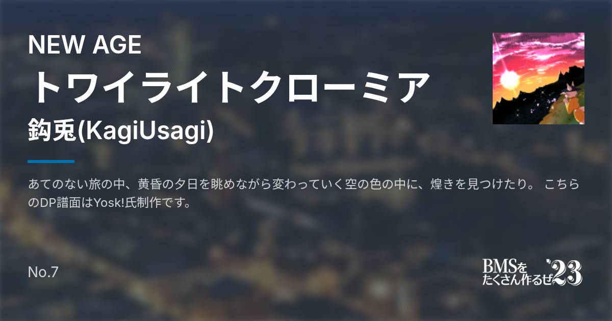 あてのない旅の中、黄昏の夕日を眺めながら変わっていく空の色の中に、煌きを見つけたり。 こちらのDP譜面はYosk!氏制作です。