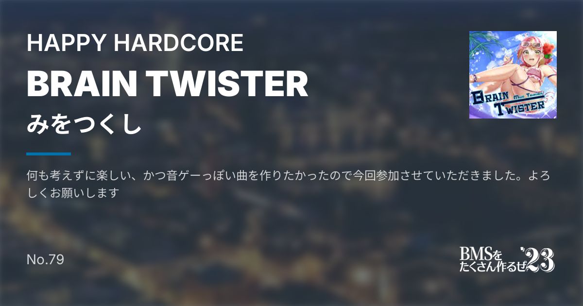 何も考えずに楽しい、かつ音ゲーっぽい曲を作りたかったので今回参加させていただきました。よろしくお願いします
