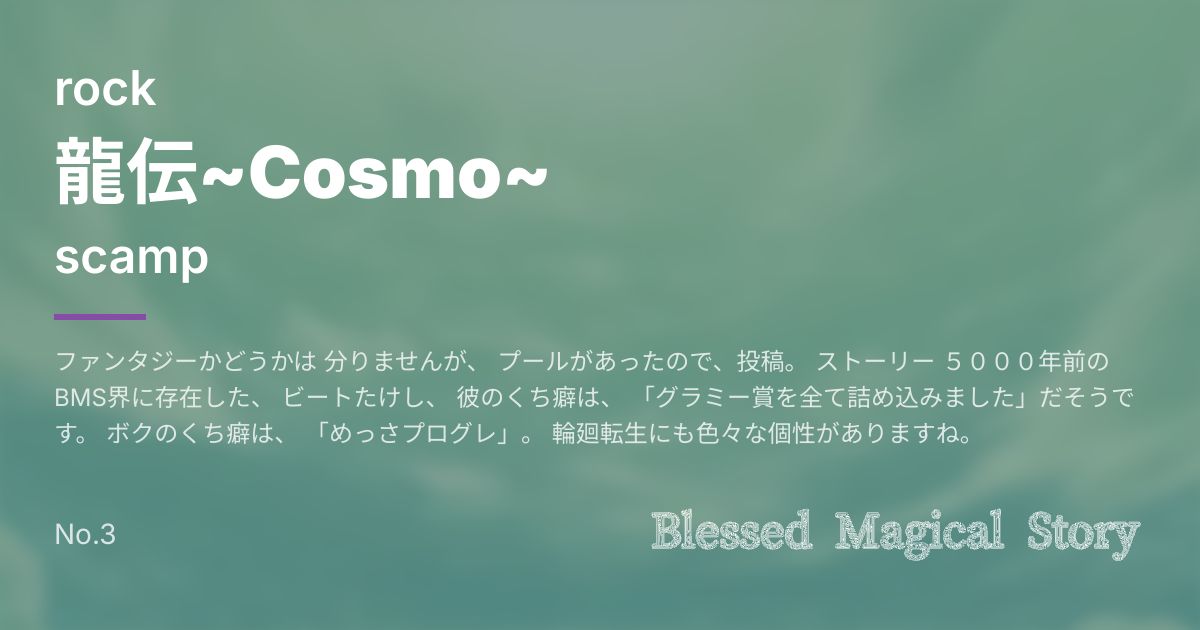 ファンタジーかどうかは 分りませんが、 プールがあったので、投稿。 ストーリー 5000年前のBMS界に存在した、 ビートたけし、 彼のくち癖は、 「グラミー賞を全て詰め込みました」だそうです。 ボクのくち癖は、 「めっさプログレ」。 輪廻転生にも色々な個性がありますね。