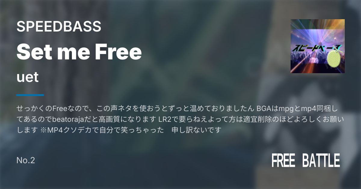 せっかくのFreeなので、この声ネタを使おうとずっと温めておりましたん BGAはmpgとmp4同梱してあるのでbeatorajaだと高画質になります LR2で要らねえよって方は適宜削除のほどよろしくお願いします ※MP4クソデカで自分で笑っちゃった 申し訳ないです