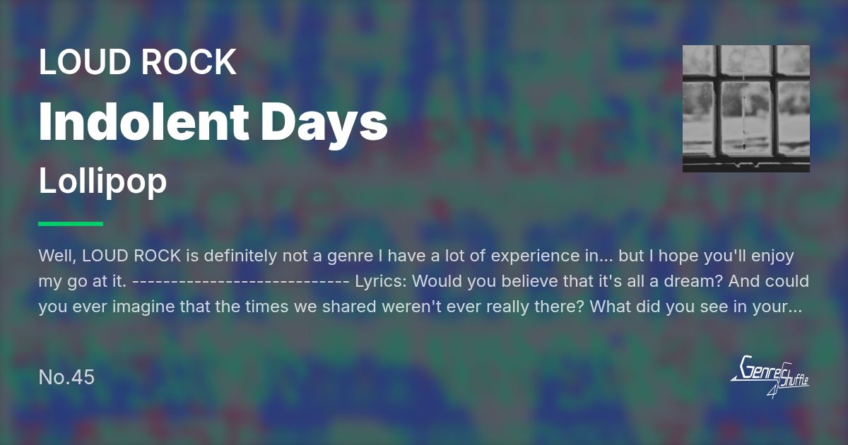 Well, LOUD ROCK is definitely not a genre I have a lot of experience in... but I hope you'll enjoy my go at it.