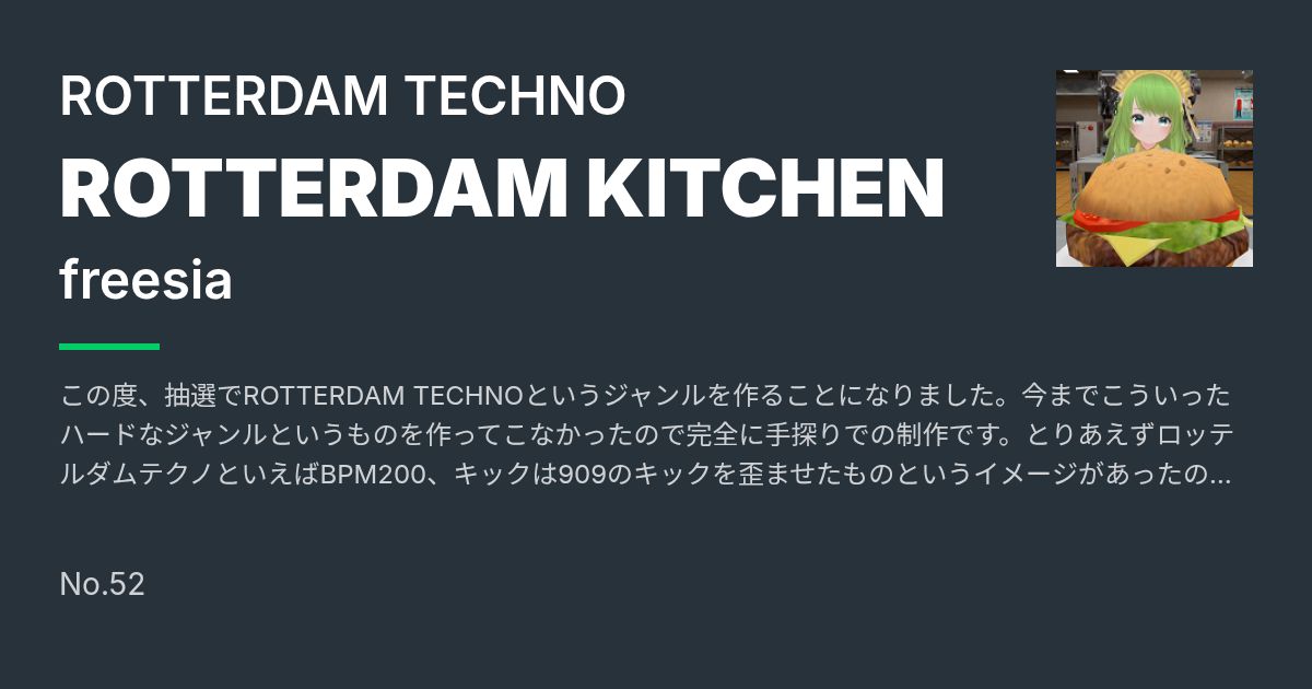 この度、抽選でROTTERDAM TECHNOというジャンルを作ることになりました。今までこういったハードなジャンルというものを作ってこなかったので完全に手探りでの制作です。とりあえずロッテルダムテクノといえばBPM200、キックは909のキックを歪ませたものというイメージがあったので、まずはここを土台にしてそこから作りこんでいくという手順で作りました。 一番苦労したのはいかんせん声ネタについての理解がなかったことです。いままで使う必要がなかったのでそもそもほとんど持っておらず、いろいろ探しながらごまかしごまかしそれっぽく聞こえるようにしてみました。 BGAはこういうジャンルは実写が合うだろうなと思いつつも、撮るアイデアも勇気もなかったのでVRChat上で撮影したものを編集してBGAにしました。撮影にはVRChatのフレンドさんに協力してもらいました。ありがとうございます。