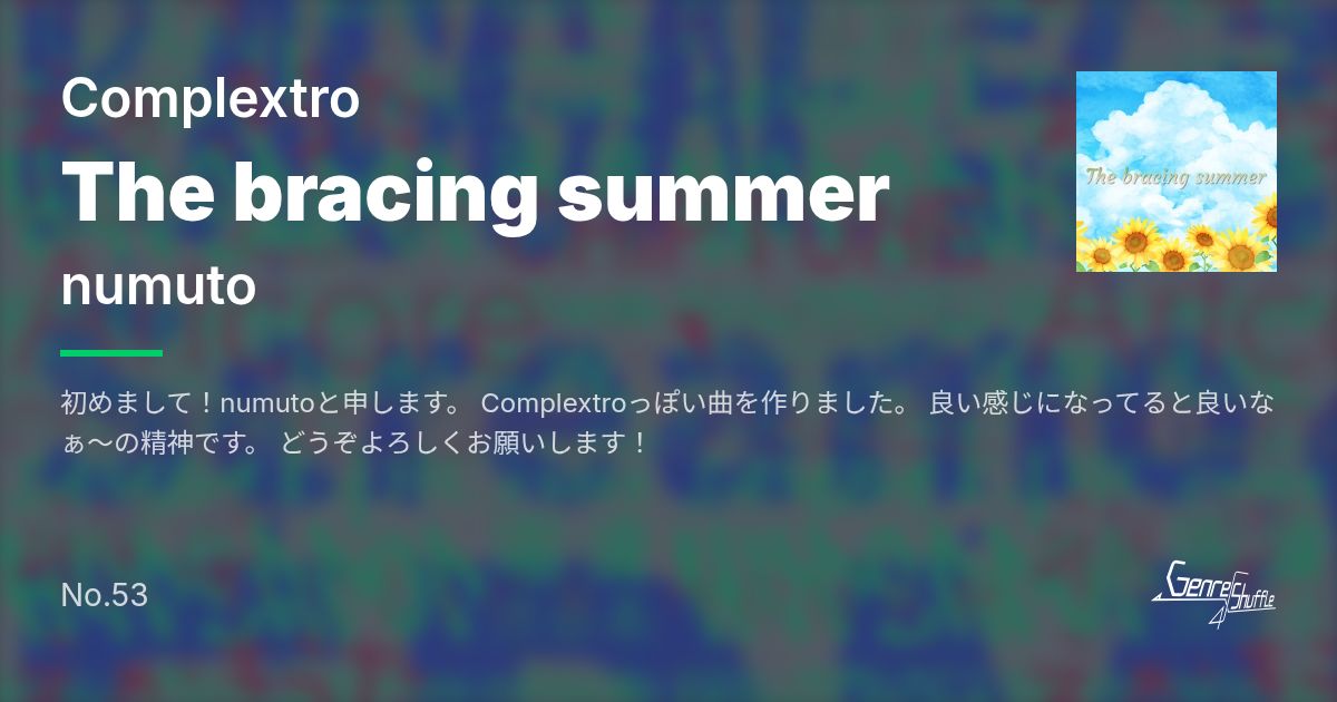 初めまして!numutoと申します。 Complextroっぽい曲を作りました。 良い感じになってると良いなぁ~の精神です。 どうぞよろしくお願いします!