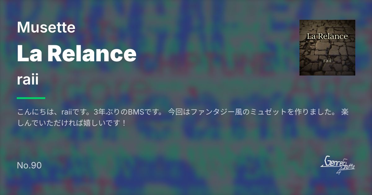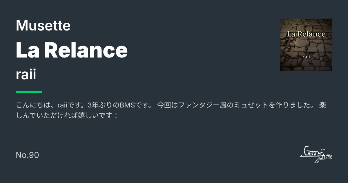 こんにちは、raiiです。3年ぶりのBMSです。 今回はファンタジー風のミュゼットを作りました。 楽しんでいただければ嬉しいです!