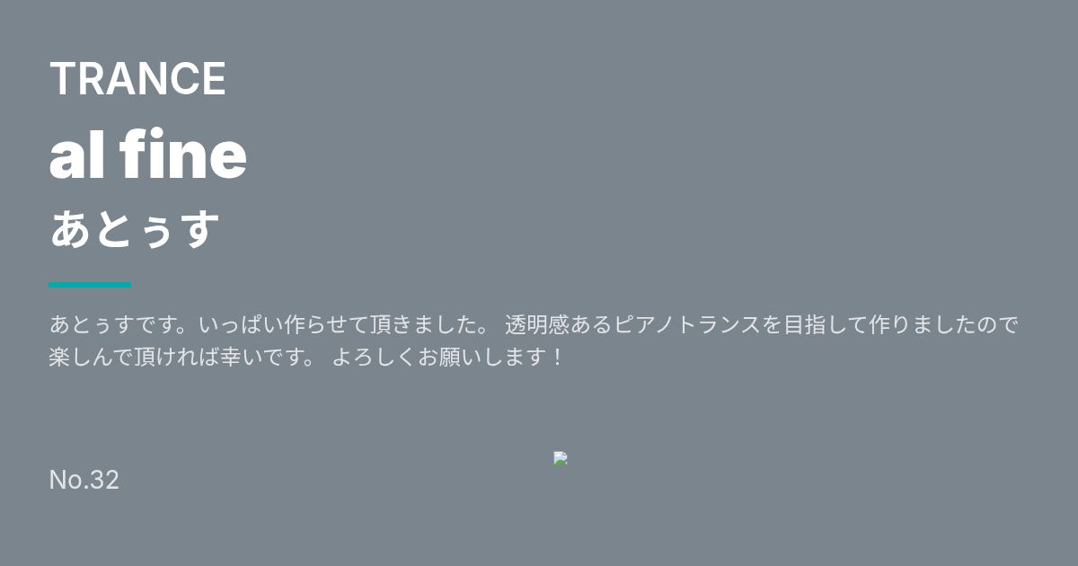 あとぅすです。いっぱい作らせて頂きました。 透明感あるピアノトランスを目指して作りましたので 楽しんで頂ければ幸いです。 よろしくお願いします!