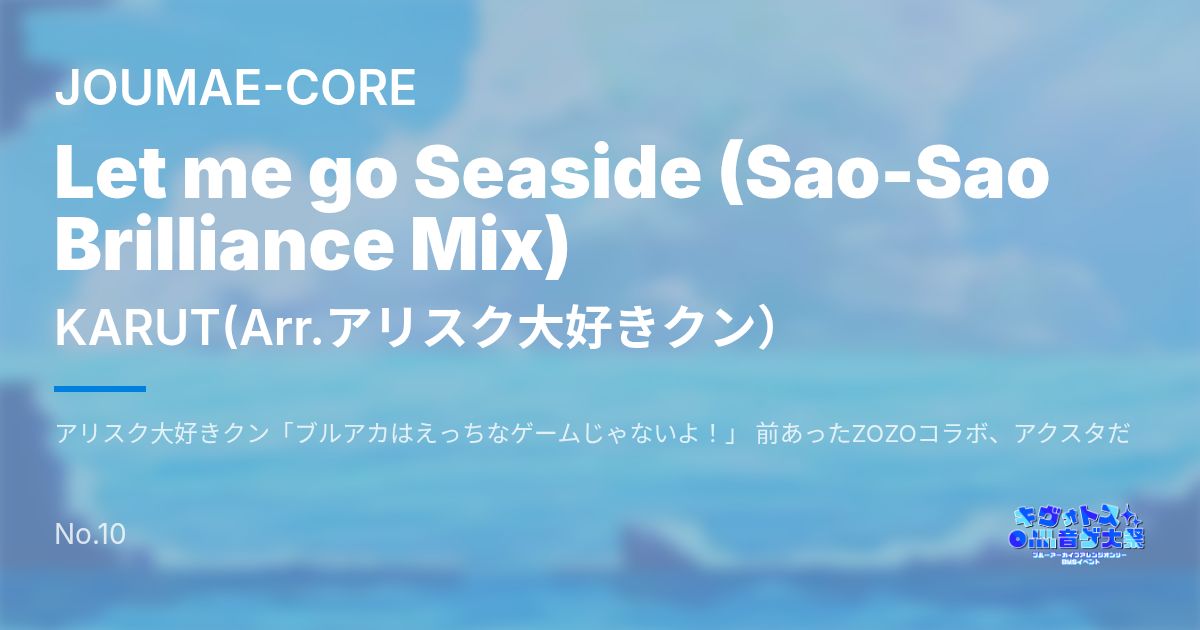 アリスク大好きクン「ブルアカはえっちなゲームじゃないよ!」 前あったZOZOコラボ、アクスタだけ買ってアパレル買わなかったの少し後悔してます イベント「Sheside outside」より KARUT - Let me go Seasideのリミックスです