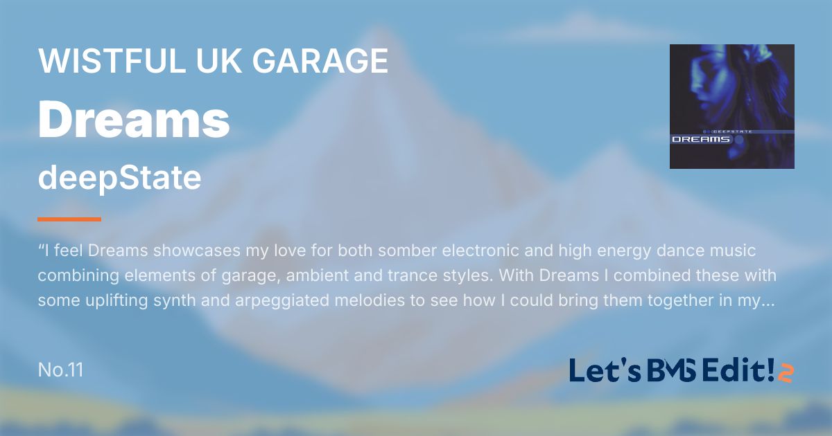 “I feel Dreams showcases my love for both somber electronic and high energy dance music combining elements of garage, ambient and trance styles. With Dreams I combined these with some uplifting synth and arpeggiated melodies to see how I could bring them together in my own way.”