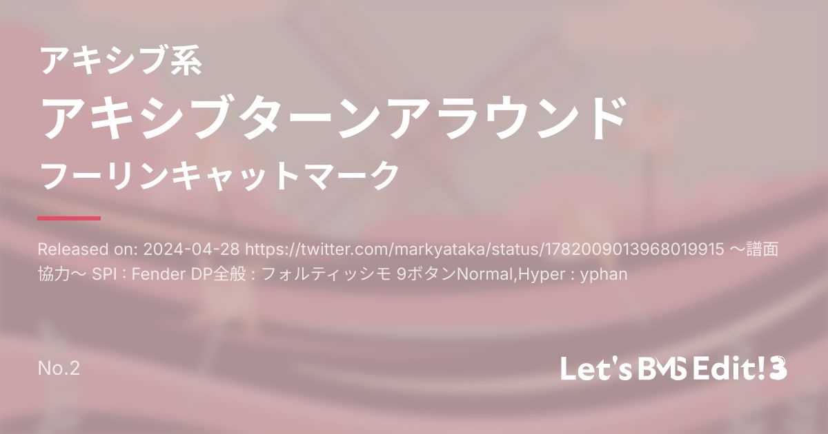 Released on: 2024-04-28 https://twitter.com/markyataka/status/1782009013968019915 〜譜面協力〜 SPI : Fender DP全般 : フォルティッシモ 9ボタンNormal,Hyper : yphan
