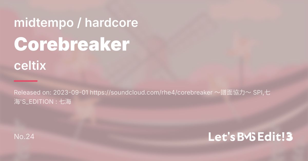 Released on: 2023-09-01 https://soundcloud.com/rhe4/corebreaker ~譜面協力~ SPI,七海'S_EDITION : 七海