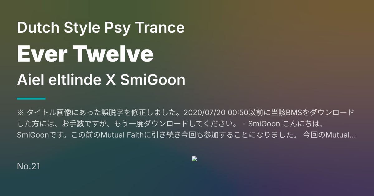 ※ タイトル画像にあった誤脱字を修正しました。2020/07/20 00:50以前に当該BMSをダウンロードした方には、お手数ですが、もう一度ダウンロードしてください。 - SmiGoon こんにちは、SmiGoonです。この前のMutual Faithに引き続き今回も参加することになりました。 今回のMutual Faith 3もPhilibusterとして参加したかったのですが時間が足りなくてPhilibusterプロジェクトを進めるのは難しいと判断し、参加しない予定でしたが、ふとした機会に締め切り2週間前からAiel eltlindeがずっと前に作業してやめたプロジェクトファイルを利用したBMSで参加することになりました。 既にPhilibusterとか昔使ったback-straightsのような合作名義もありますが今回のBMSはそのどちらにも該当しない作品なので簡単に名義を併記する方式で参加します。次のMutual Faithには既存の合作名義を利用したBMSで参加したいですね。 こんどのBMSはAiel eltlindeがまえ作った「Ever Eleven」というBMSの後続作みたいなBMSです。その時の記憶をもとに作ったBMSなので、ぜひ楽しくプレイしてほしいです。 それでは、よろしくお願いします。 - Aiel eltlinde お久しぶりにご挨拶を上げます。 Aiel eltlindeです。 長い間曲作りから離れていましたが、SmiGoonに誘われてまた作ることになりました。 今度はもはや十年以上過ぎた曲の続であります。 その時から計画だけあって、12秒ほどのメロディーは作ってましたが、それから十年過ぎたんです(笑 けど、そんな可能性ないはずのメロディーをSmiGoonが受けて立派な展開に変えてしまったのです。 めでたしめでたし。 久しぶりにコメントを書いたら長くなりそうなので、 では、今回もよろしくお願いします。