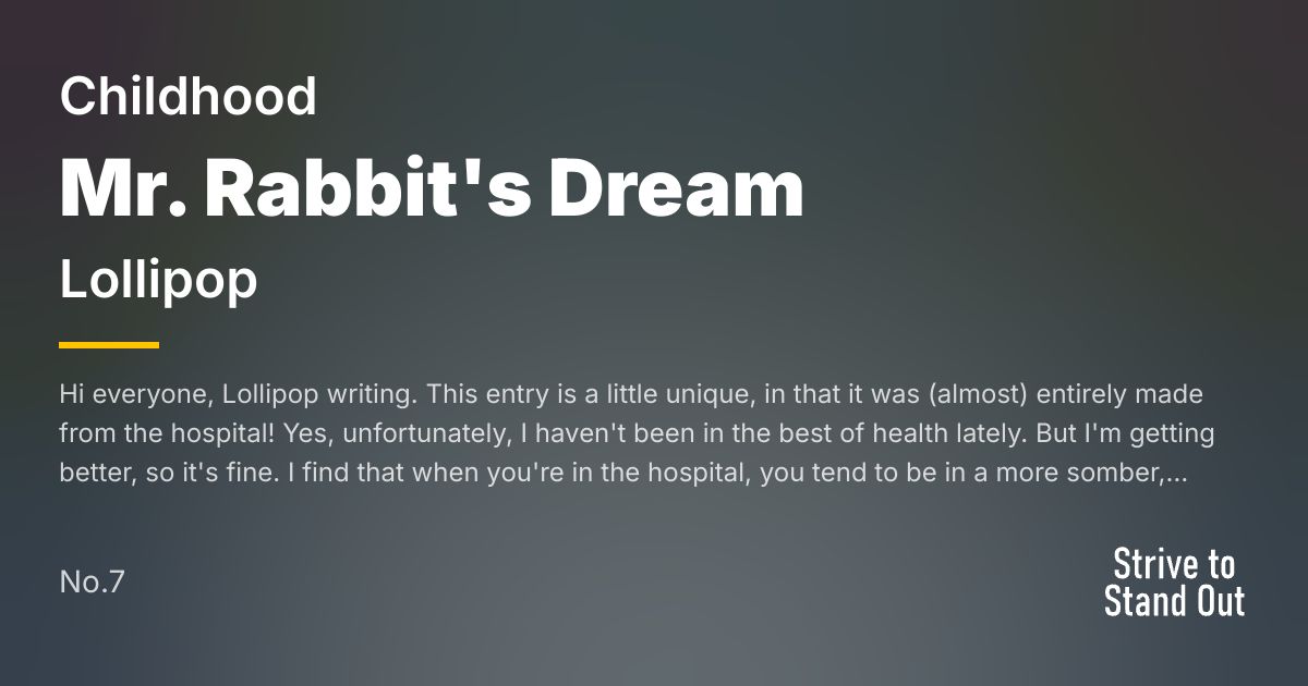 Thanks for checking out my entry! Honestly, this description is little more than advanced rambling.