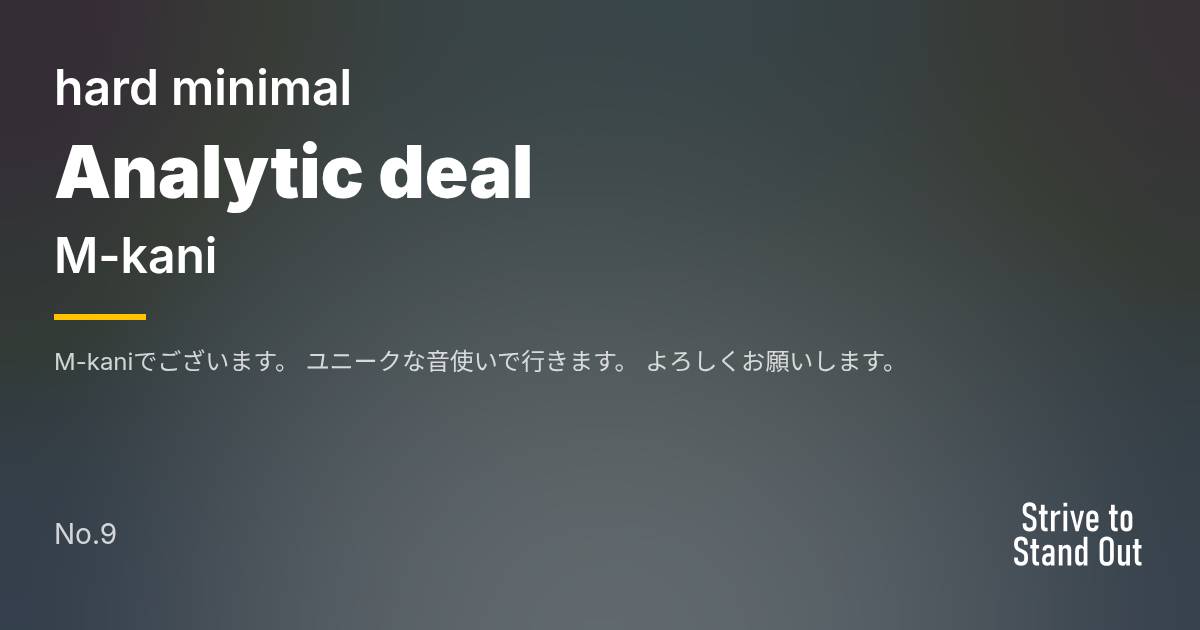 M-kaniでございます。 ユニークな音使いで行きます。 よろしくお願いします。