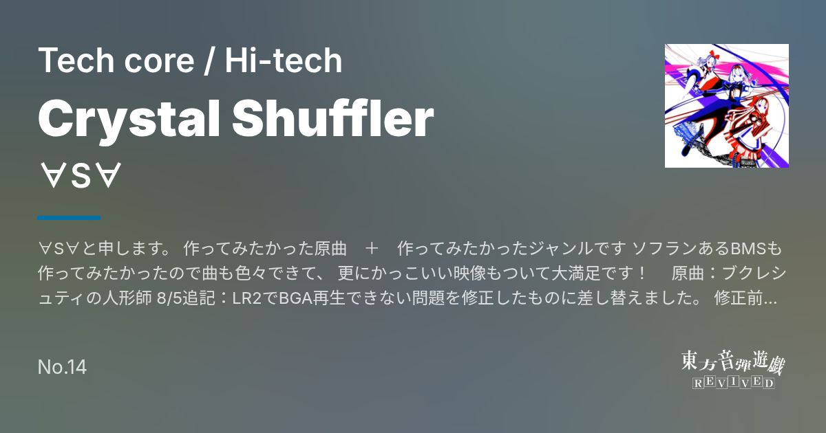 ∀S∀と申します。 作ってみたかった原曲 + 作ってみたかったジャンルです ソフランあるBMSも作ってみたかったので曲も色々できて、 更にかっこいい映像もついて大満足です! 原曲:ブクレシュティの人形師 8/5追記:LR2でBGA再生できない問題を修正したものに差し替えました。 修正前をDL&LR2環境の方はお手数ですが以下のリンクから 「movie.mpg」を差し替えてプレイしていただければ幸いです https://drive.google.com/file/d/1HlUri6vwqxBej7eQ9rj351N24qn5k_57/view?usp=drive_link 8/11追記:音量調整修正